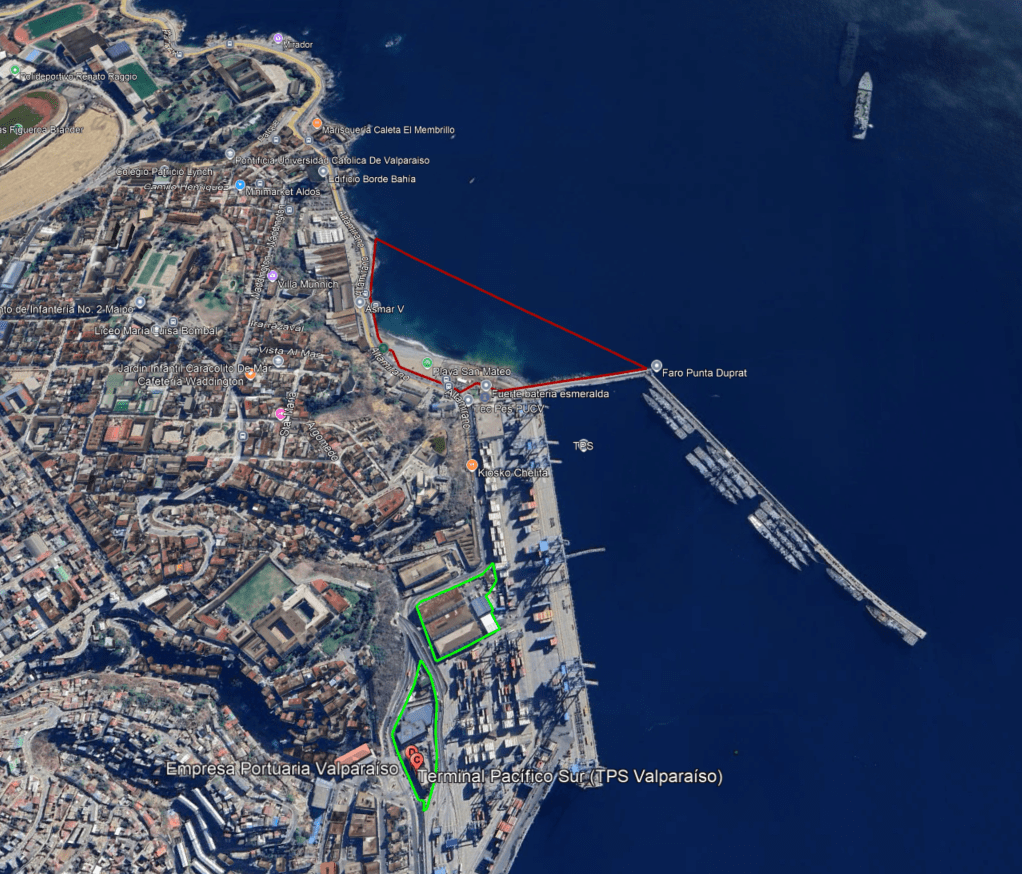 Dado lo anterior, me gustaría mencionar que aún podríamos analizar un área que hasta ahora da la impresión no ha sido evaluada. Centro de Abastecimiento e imprenta de la Armada de Chile, más los edificios administrativos de EPV (en color verde en el mapa).